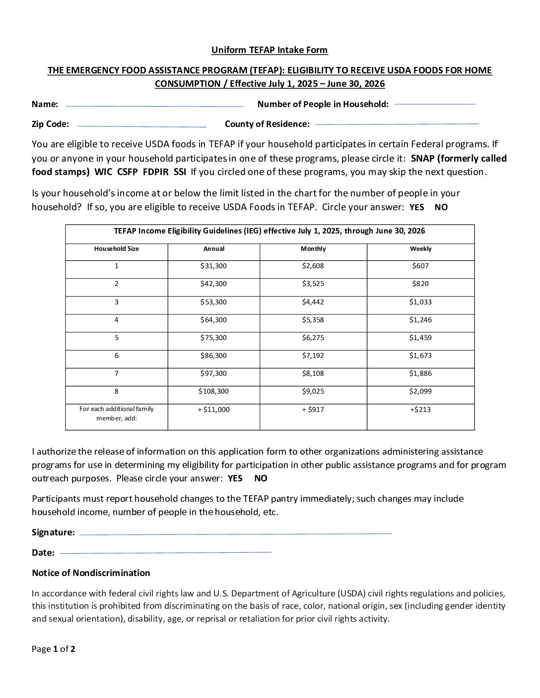 We distribute food on Wednesdays from 9:30 a.m. to 5:30 p.m. If you need special assistance outside those times, please use any of our methods shown on the Contact page.